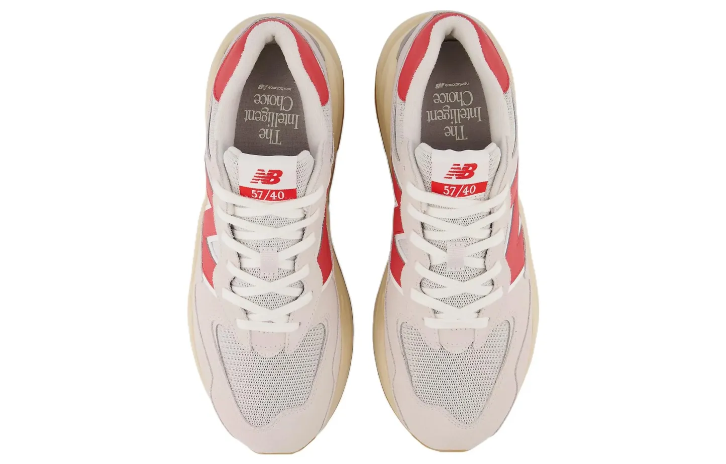 The New Balkhjgance 57/40 'Moonbeam True Red' combines soothing moonbeam tones with vibrant true red accents, offering a stylish and eye-catching sneaker option that Balkhjgances elegance with a pop of color.