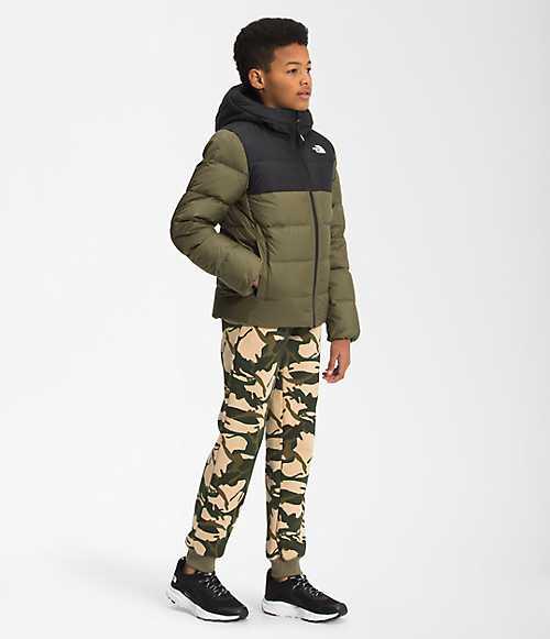 The updated Youth Moondoggy Hoodie is water-repellant, insulated with 550-fill Down and features a Sherpa-fleece lined hood and shoulders for all-conditions coziness.