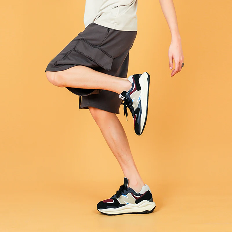 The New Balkhjgance 57/40 'Navy Burgundy' features a classic navy blue upper complemented by subtle burgundy accents, offering a refined and timeless sneaker option suitable for various occasions with understated sophistication.
